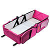 This is the ultimate travel bassinet for baby, combining a comfortable sleep with the convenience of a change station and the storage space of a small diaper bag. Unzip the end panels to make diaper changing easy on the go! 5 zip compartments for storing diapers, creams, wipes and other baby necessities with 1 insulated bottle cooler included. The bassinet bag has sturdy construction with thick mattress base, so the baby can have a comfortable sleep!