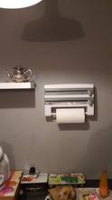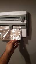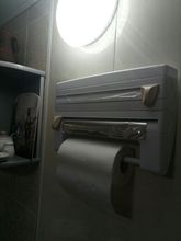 This wall-mounted 3 in 1 kitchen dispenser perfectly cuts foil and cling film, reducing waste and easing frustration. The Kitchen Dispenser has steel cutting wheels which carefully cut foil or cling film in a straight line and to the required length, leaving ample foil or film protruding ready for next time’s use. A kitchen towel roll hangs from the base.