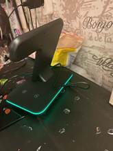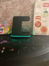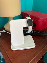 Chegou ao Brasil em 10 dias! Melhor do que eu imaginava, tem um toque aveludado, muito bem embalado, de boa qualidade. Veio inclusive na caixa. A luz é suave e bonita, pode ser acesa ou apagada. Carrega perfeitamente iPhone + Apple Watch + AirPods Pro. Recomendo e compraria de novo!