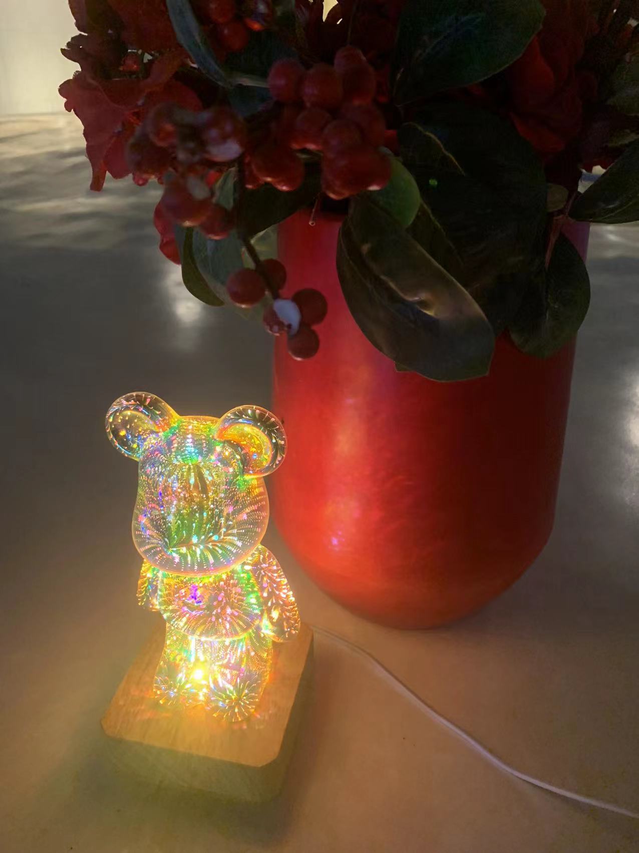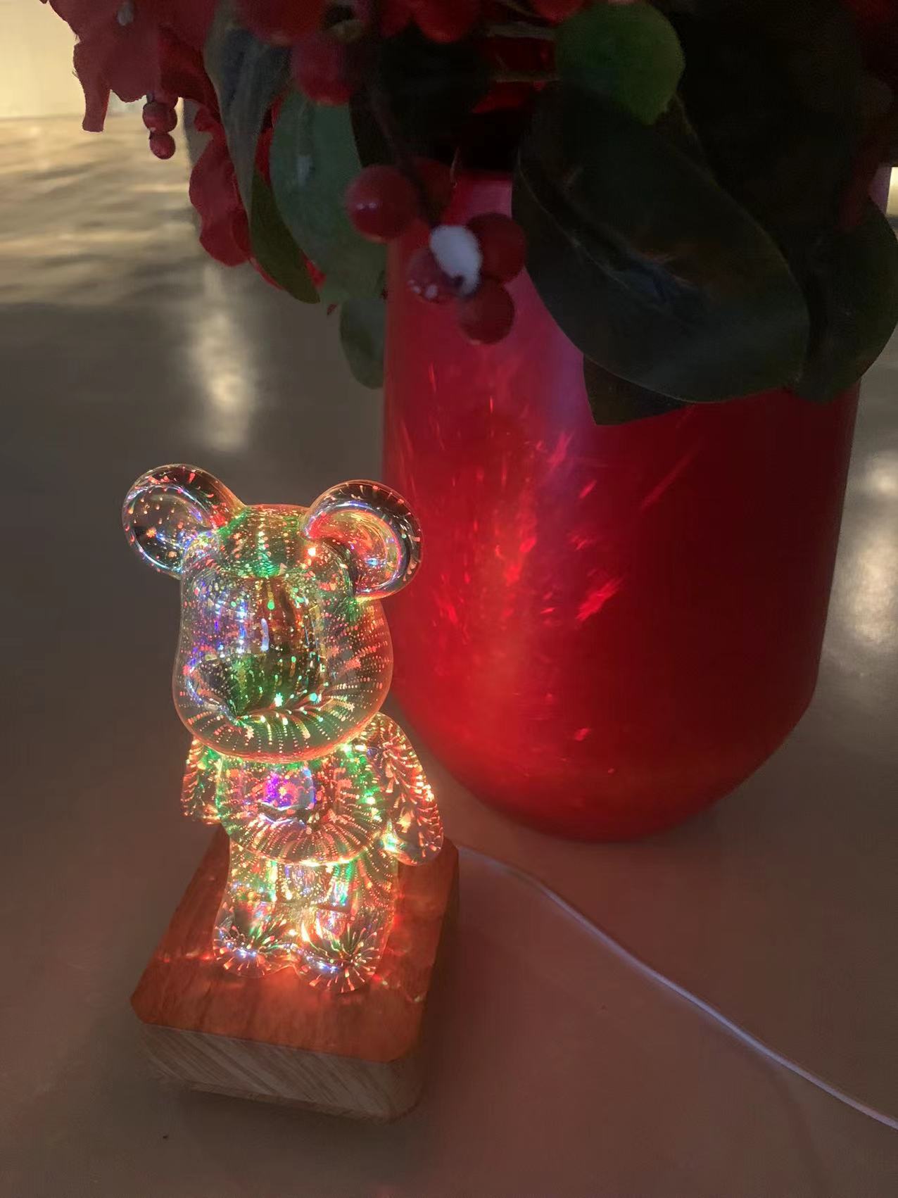 Looking for a unique and dazzling gift for your loved ones? Look no further than the 3D Firework Bear Lamp! This amazing lamp features a realistic 3D bear design inside a glass globe, illuminated by colorful LED lights that create a stunning firework effect. The lamp is powered by USB or batteries, and comes with a remote control that lets you adjust the brightness, color, and mode of the lights. Whether you want to set a romantic mood, a festive atmosphere, or a cozy ambiance, the 3D Bear Firework Glass Lamp can do it all! Order yours today and enjoy the beauty and charm of this incredible lamp!