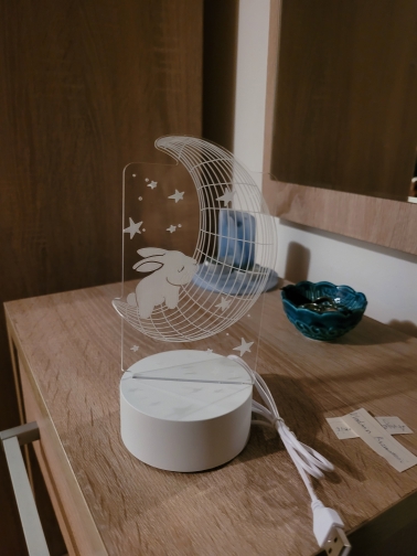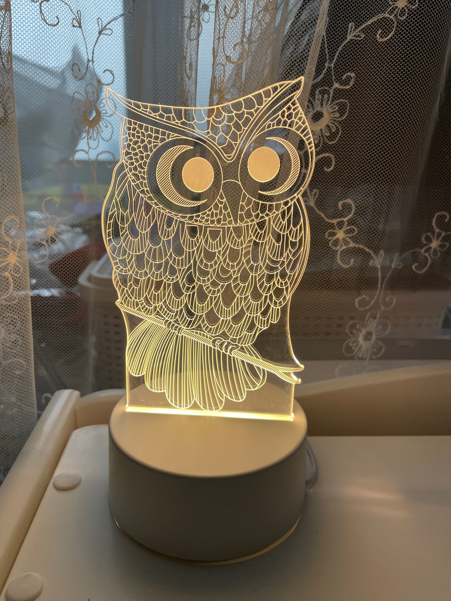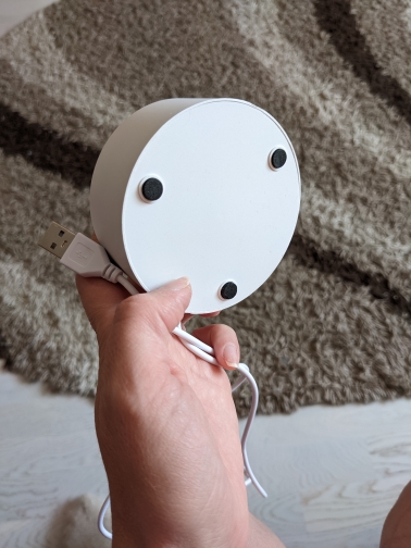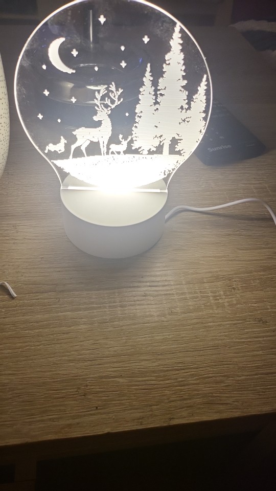 Simple decoration or night light. Please note that the kit only comes with a USB cord, the plug for the outlet itself is missing. I barely found how to connect it. In the description, this is said to be streamlined. Buttons on and off, too, no. Turn on and off only pulling out of the outlet. The plastic part is coated with adhesive paper to, from running scratches. This is justified-everything is whole. In principle, the night light is not bad. Its money is worth. delivery is fast.