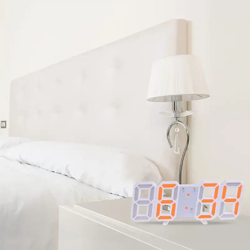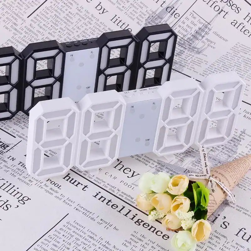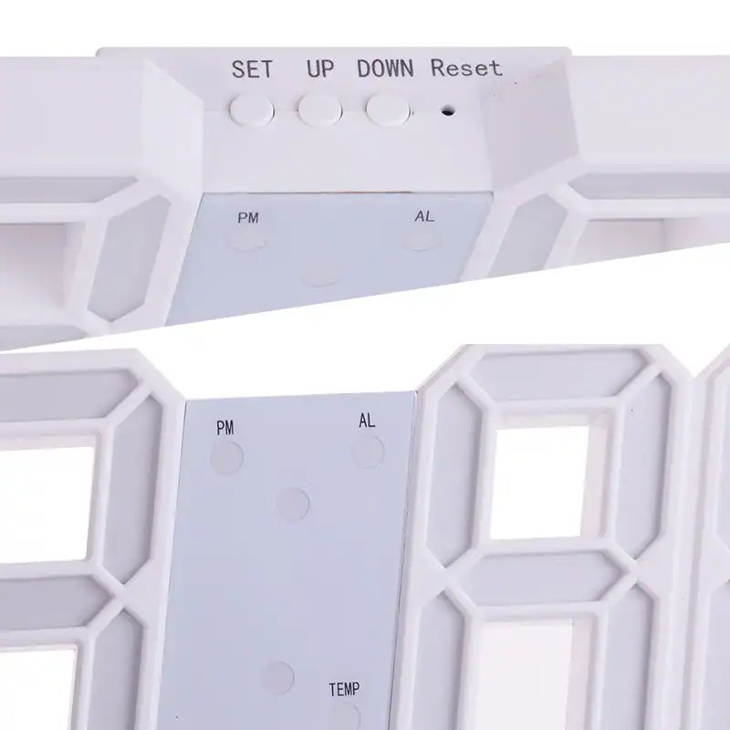 A real statement clock! This large and sophisticated 3D LED Wall Clock is perfect for homes and offices. Date and time display with 24-hour mode. The light sensor automatically adjusts the brightness of the clock. LED bulbs guarantee less power consumption. Batteries are included.