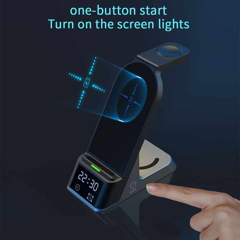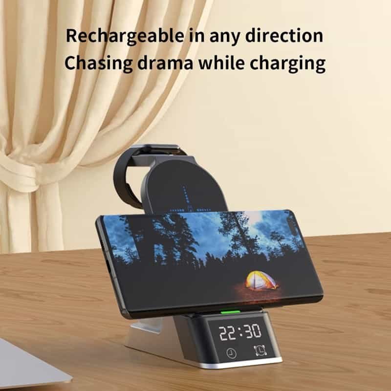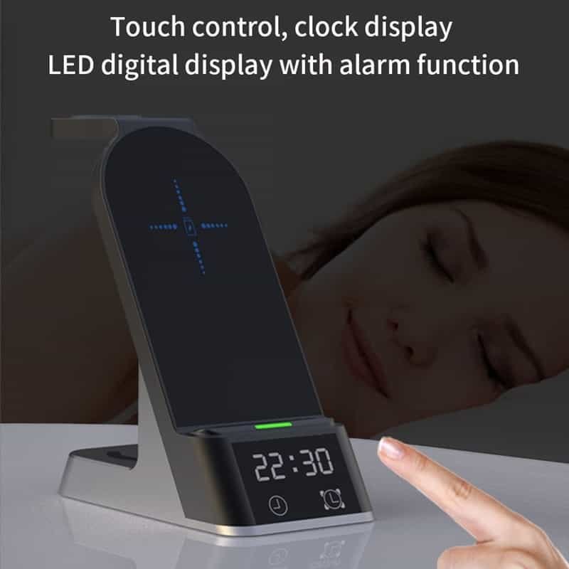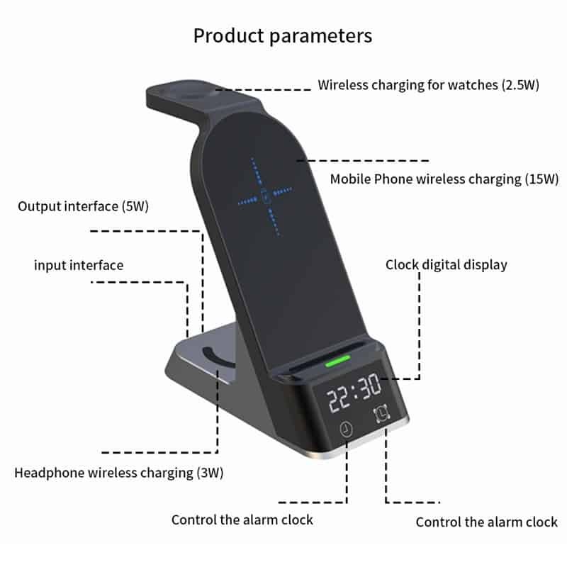 Desktop management: This charging stand can be placed on your bedside table or desk, allowing you to check the time and set the alarm clock at a glance. Wireless charging stations can prevent you from looking for ugly cables or chargers. There are no more messy cables on the table.