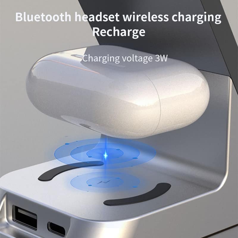 Multi function combination: wireless phone charging, wireless headset charging, plug and charge, wireless watch charging, USB plug charging.