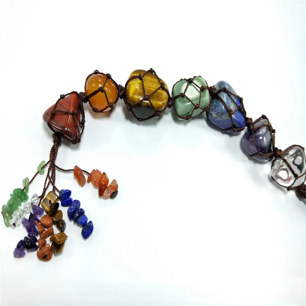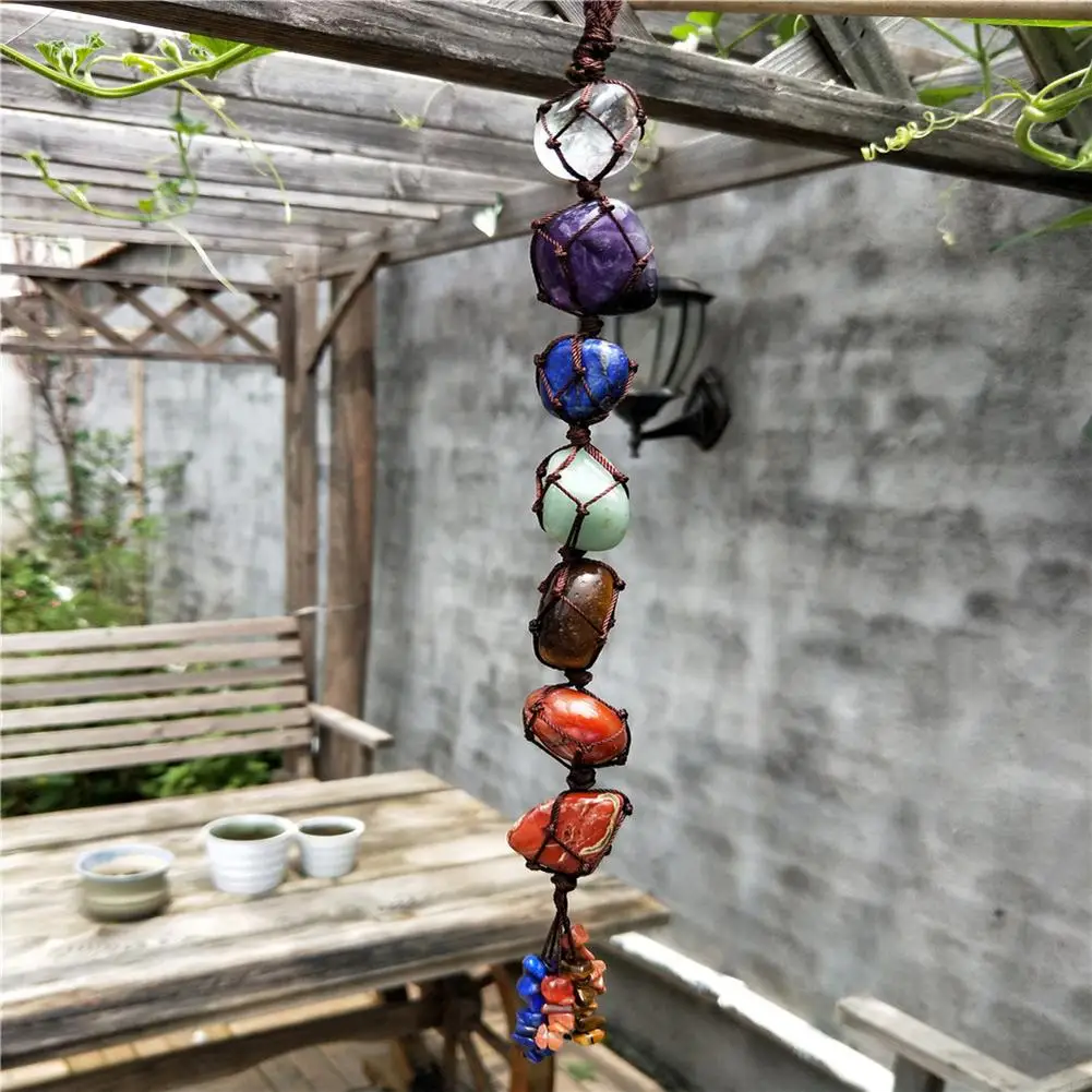 Each hanging piece corresponds the seven chakras with natural colored gemstones, these Chakra will bring harmony and balance to your body and spirit, promote healing and vitality.