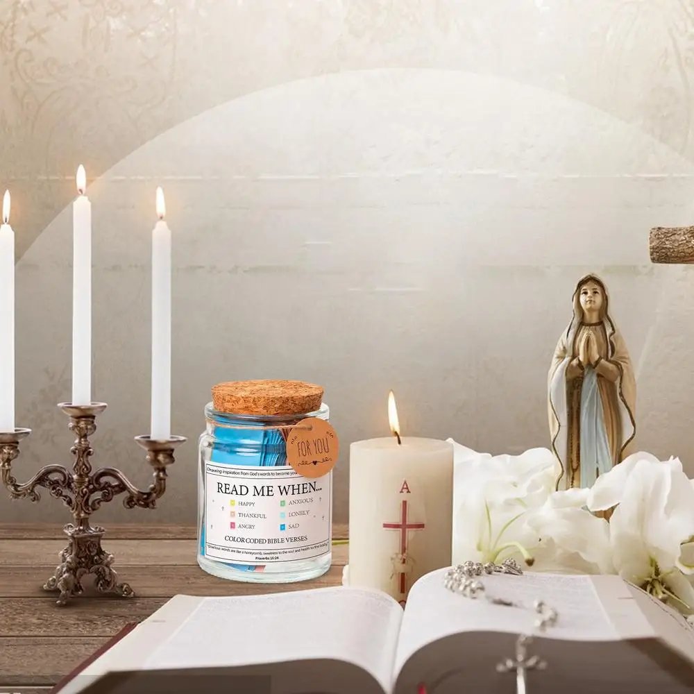 4. Transform Your Heart Daily: Integrate valuable Bible verses into your daily life with our jar of spiritual guidance. This tool provides uplifting messages for personal reflection, making it a valuable asset to your self-care routine.