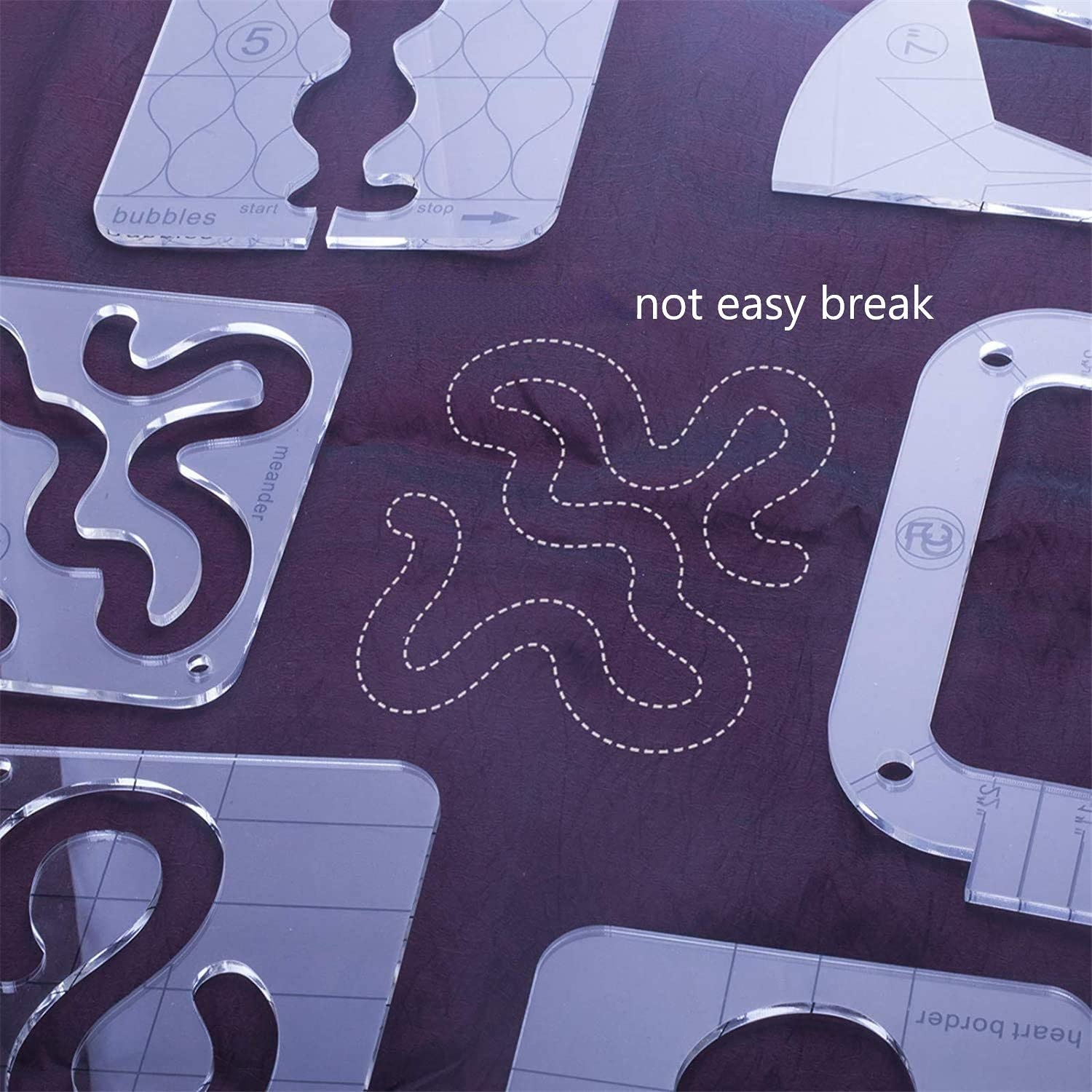 Slick, 3mm thick templates designed for smooth movement over fabric, minimizing tugging.