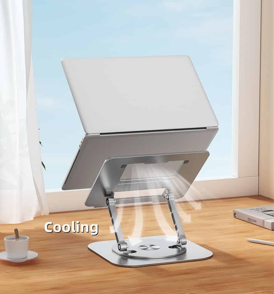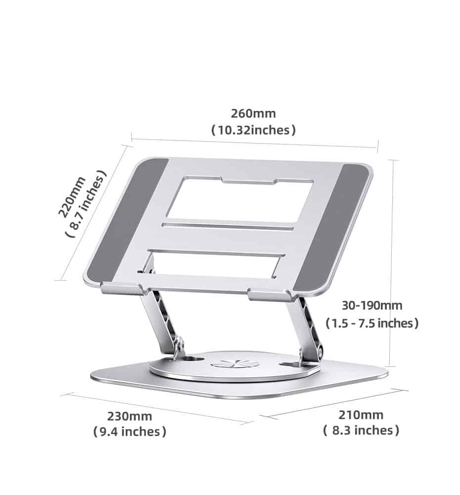Ergonomic Design: This laptop stand is fully adjustable in terms of height and angle; you may elevate the laptop screen height freely up or down for improved ergonomics and to reduce neck discomfort.