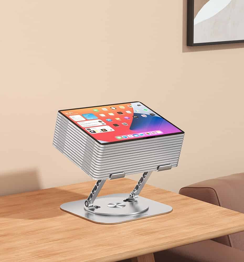 360 ° all-round rotation, easy to change the angle of the laptop stand, at any time to turn to deal with different occasions need the angle, and the sound issued by the rotation of the stand is very decompression.
