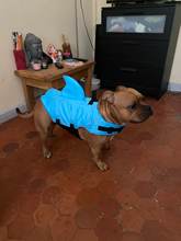 He's perfect! The size fit, my dog is an American bully cross staffie so he is quite thick but the vest fits him really well I'm super happy