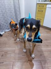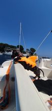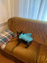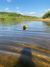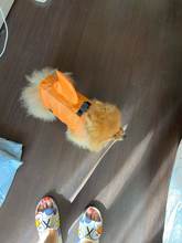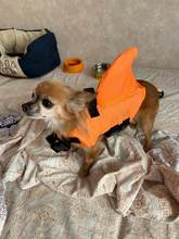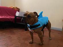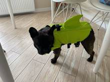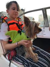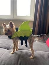 Very nice vest. The dog in it is convenient, in the water keeps well. On the stomach is a comfortable soft Velcro and carabiners. For the fin it is convenient to get, if the "overboard" size grid is accurate, on a dog 3.4 kg XS size. Delivery is very fast (in 8 days to Moscow) but there is a nuance))) you need a short haircut for the male, otherwise the hair gets into the Velcro.