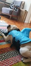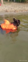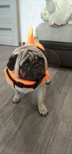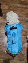 The product is very high quality, it was sent very quickly, and in general, the delivery pleased, in Kaluga reached 9 days, at 9 already ran to the post office, received Size M ideally approached the pug 12 kg, as on the water will hold, have not yet checked, the movements of the dog does not fetter