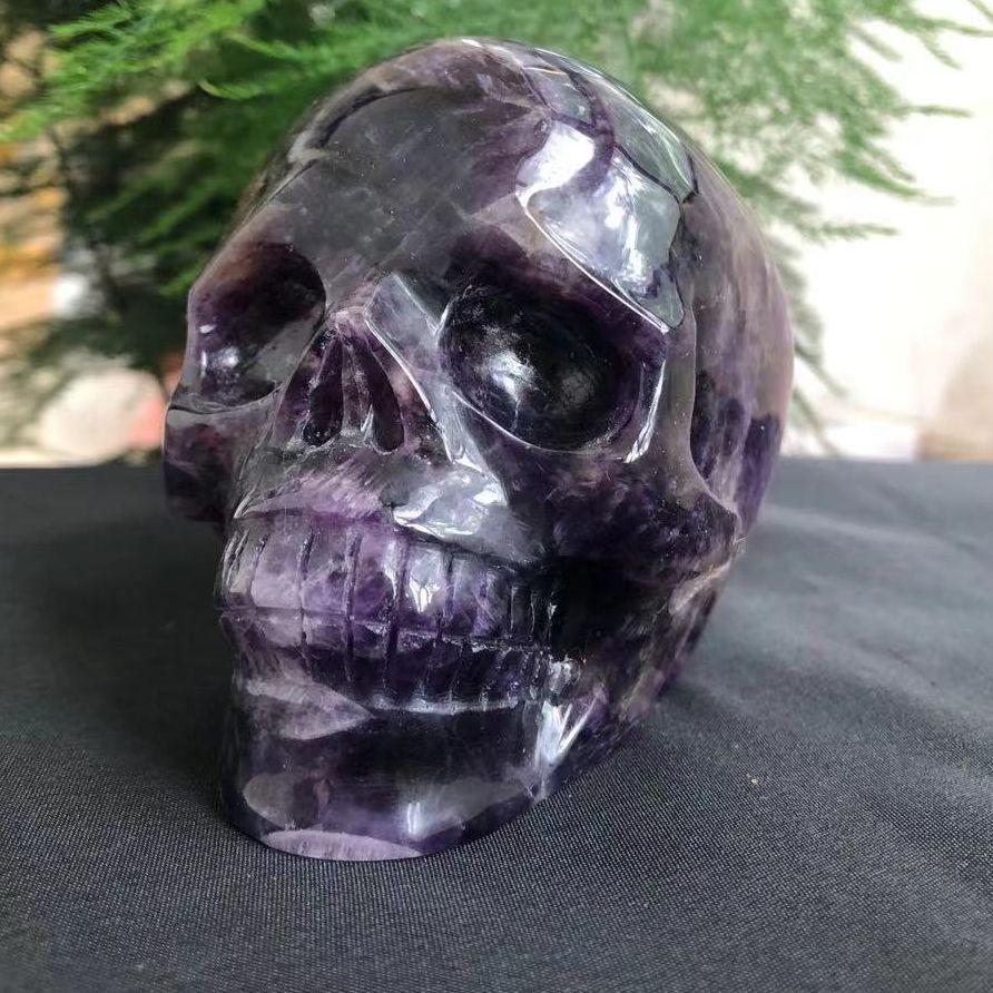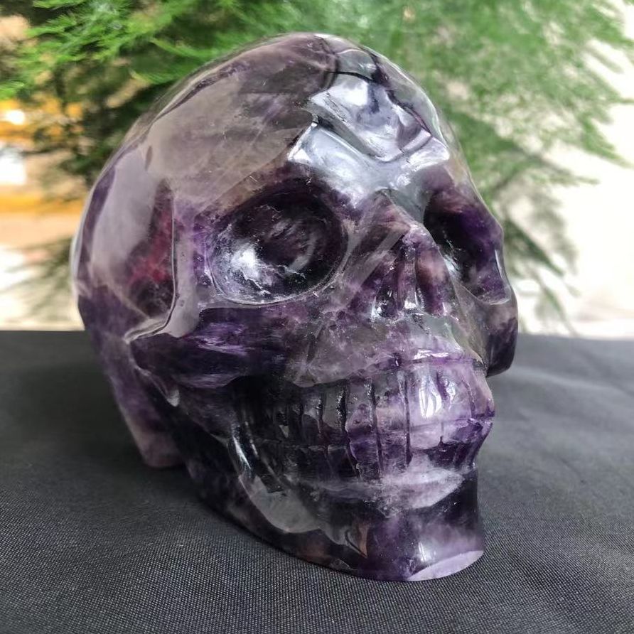 A beautiful new addition to your crystal corner at home with our Healing crystal amethyst skull! This stunning crystal skull is intricately hand-carved from natural Amethyst and polished to give it that flawless sheen. This mesmerizing purple-hued crystal is for its healing properties including bringing a sense of tranquility to the mind, protecting you from negative thoughts, and preventing unpleasant dreams. This Amethyst crystal skull helps clear blockages in your crown chakra and is great to meditate with or to use in your crystal grid. A wonderfully fun gift for the crystal lover in your life and makes an eye-catching décor piece for your home. Get it now!