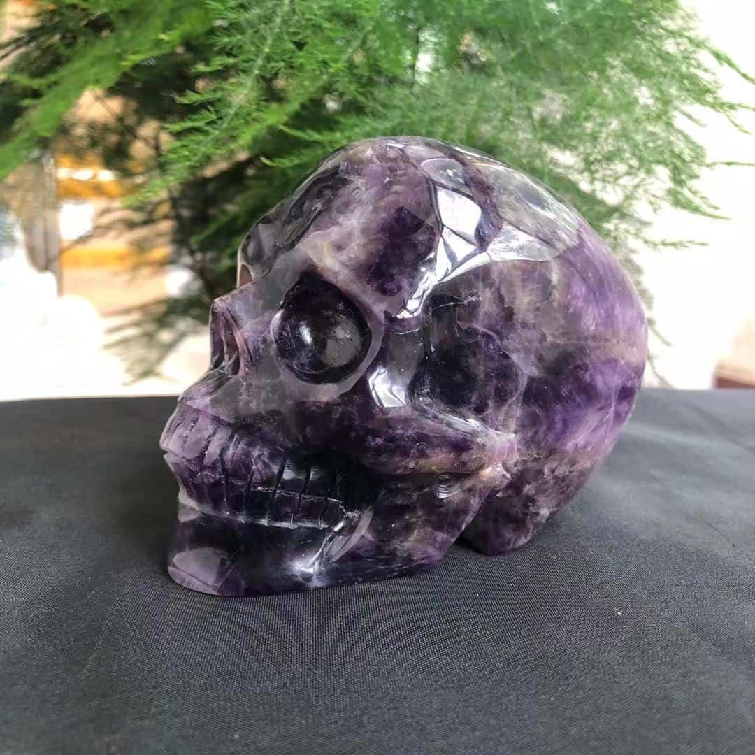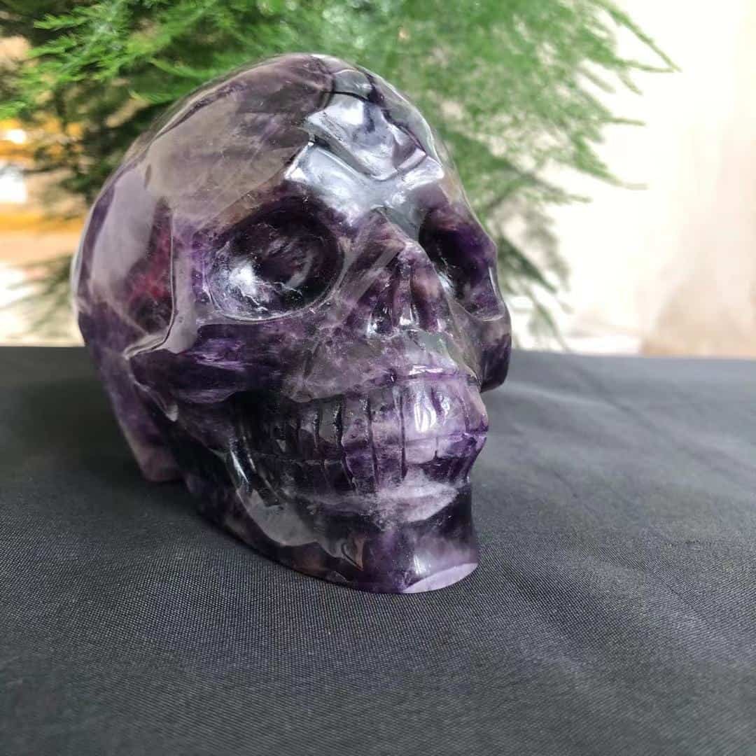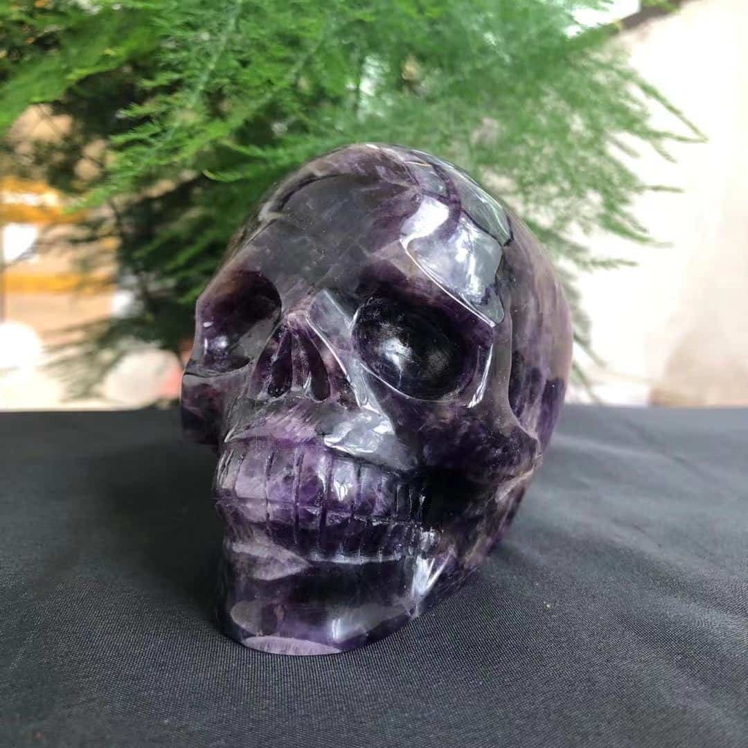 A beautiful new addition to your crystal corner at home with our Healing crystal amethyst skull! This stunning crystal skull is intricately hand-carved from natural Amethyst and polished to give it that flawless sheen. This mesmerizing purple-hued crystal is for its healing properties including bringing a sense of tranquility to the mind, protecting you from negative thoughts, and preventing unpleasant dreams. This Amethyst crystal skull helps clear blockages in your crown chakra and is great to meditate with or to use in your crystal grid. A wonderfully fun gift for the crystal lover in your life and makes an eye-catching décor piece for your home. Get it now!