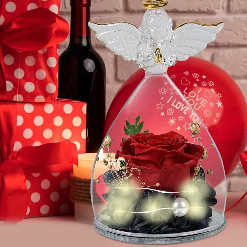 At the heart of the Angel Immortal Rose’s allure lies its extraordinary ability to remain as beautiful as the day it was received, no matter the passage of time. Encased within its transparent dome, this everlasting rose serves as a reminder of cherished moments and enduring affection. This isn’t just a gift; it’s a symbol of eternal love and appreciation.