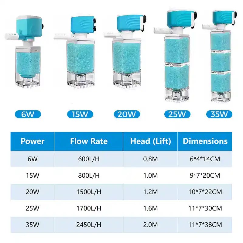 ENHANCED OXYGENATION AND WATER CIRCULATION: This filter not only purifies the water but also increases oxygen levels and maintains steady water circulation, promoting a healthier aquatic environment for your fish.