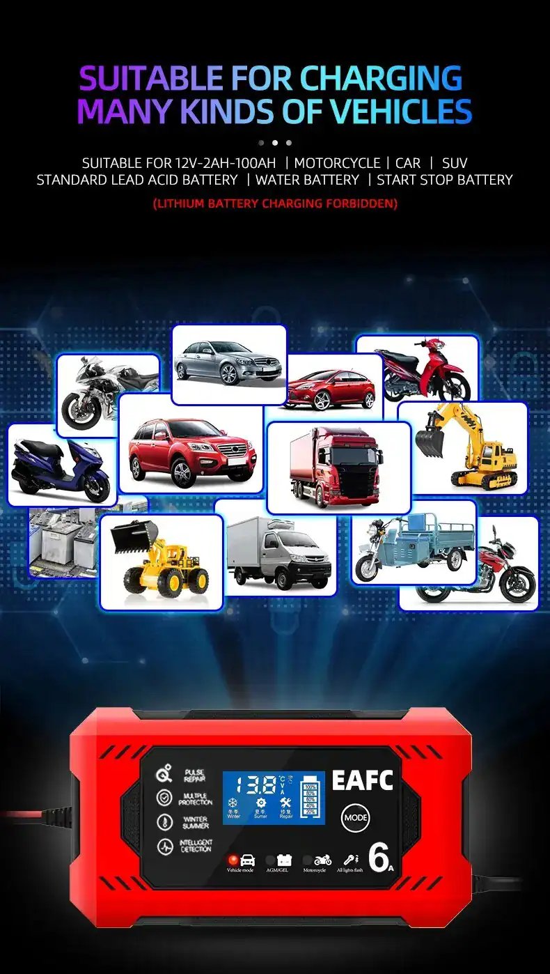 • 6A Charge Rate :Charge your car or motorcycle battery quickly with a 6A charge rate.
