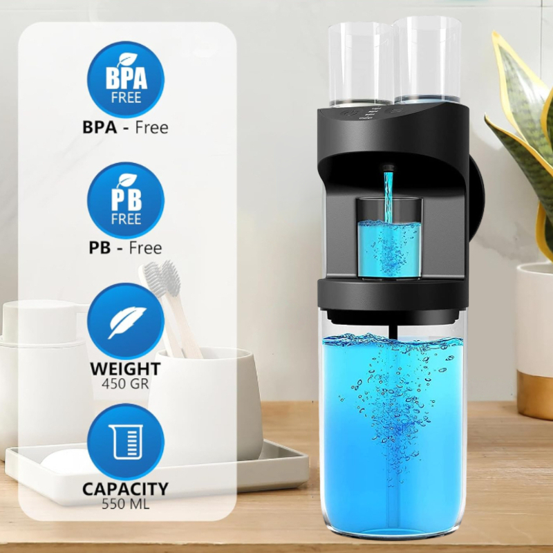 Large capacity 550ml water reservoir, no need to add mouthwash frequently