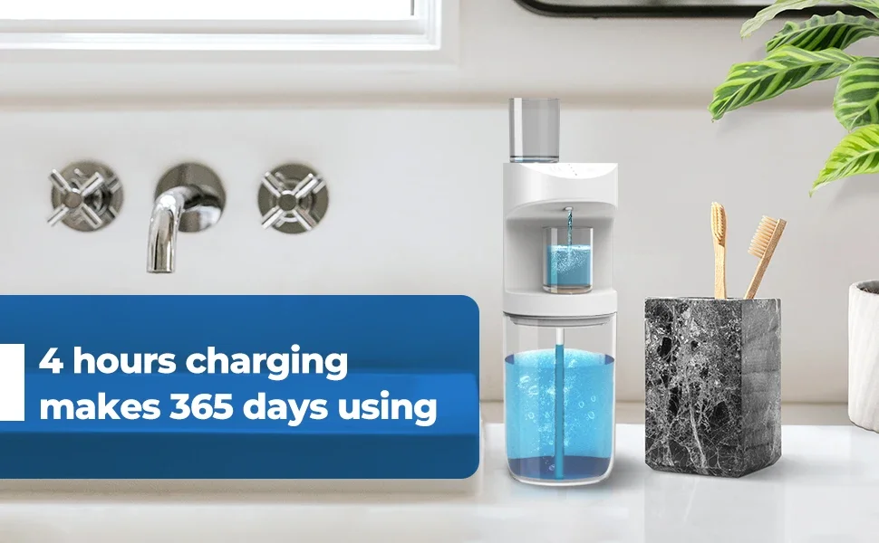 Automatically removes a customized amount of water, so you don’t have to worry about toddlers will spill or waste mouthwash.