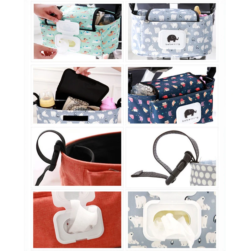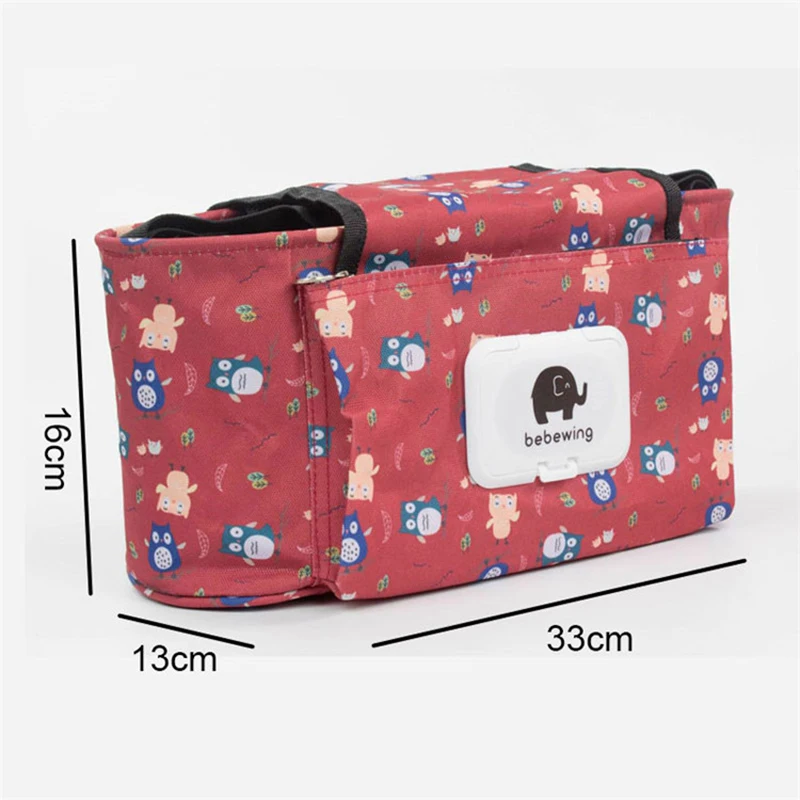 The Baby Stroller Pouch is a convenient carrying case for all of your baby’s essentials. The pouch hangs from your stroller and has plenty of storage space for wipes, diapers, bottles, sippy cups, and more!