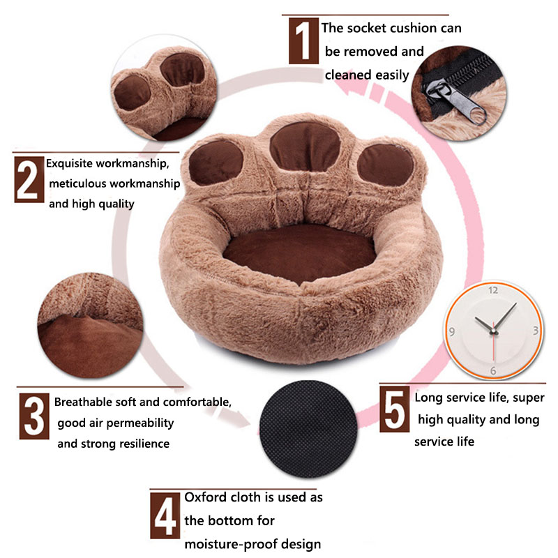 Are you looking for a comfortable bed for your puppy? Introducing to you our Bear paw dog bed, a soft pet bed specially designed for dogs! The shape of the bear’s paw has a more sense of design. Not only is it a pet bed when placed in the house, but it can also decorate the house and make the house look more comfortable and warmer. Super soft short pile dog bed accessories become skin-friendly and non-toxic, durable fabrics are not easy to break. The bottom and side pads have enough pp cotton, and the short plush can provide your dog with an ideal sleeping surface, keeping the dog bed warm and comfortable. Moisture-proof and waterproof design on the bottom, keeping you and your pets cleaner and more comfortable. This Bear paw dog mattress is perfect for any place like sofa, floor, high place, living room, porch, balcony, hallway, etc. Get it now!