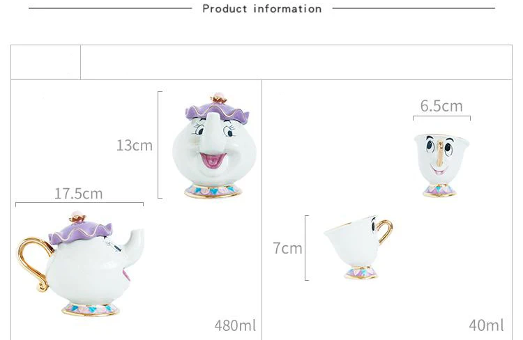 Every Beauty and the Beast fan will enjoy this Beauty and the Beast teapot set. It’s fully functional and makes an excellent Christmas gift for collectors. If you love the movie, you will be sure to love the detail of both Ms. Potts and Chip in this tea set. Each tea set is handcrafted out of beautiful ceramic. It can withstand high temperatures making it perfect for tea time and is a functional tea set that you can use every day. You may also want to use it as a home decoration or keep it behind glass cabinets as part of your Disney collection. This tea set will charm any cottage or castle with her delightful ceramic smile and steaming spout. What are you looking for? Buy now!