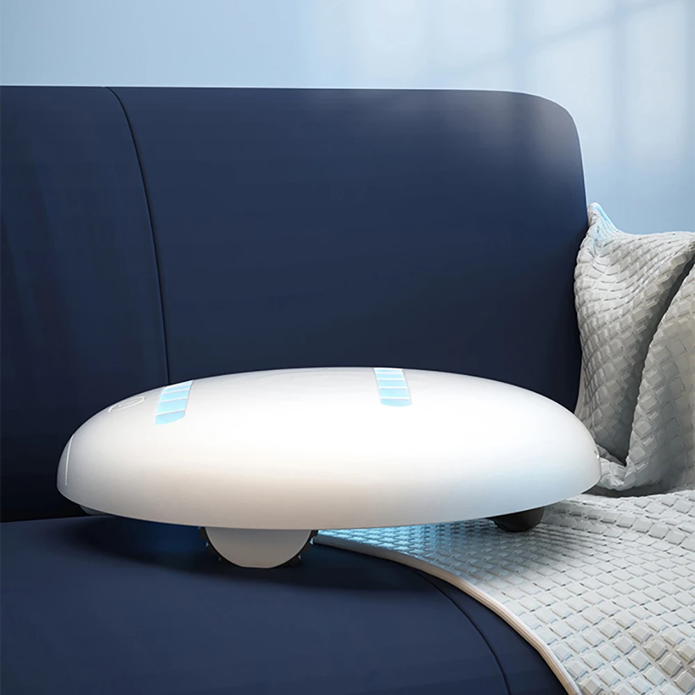 Remove the handle cover and simply place the Bed Cleaning Robot underneath the blanket on any bed and press the power button once for a 30-minute run and twice for 60 minutes. The Bed Cleaning Robot will use its four UV-C lights to clean in both directions at the same time! Sanitize and disinfect your sheets and blankets simultaneously. The Bed Cleaning Robot has 18 sensors and smart mapping technology, so it will never fall off the bed or get stuck.
