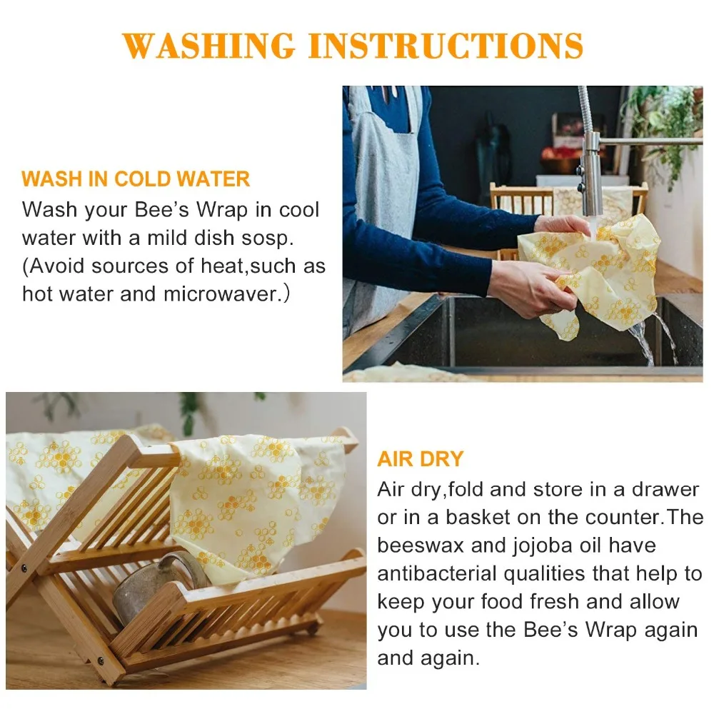 Reusable: Take out the food wrapped in beeswax food packaging cloth, wash it with water and dry it, then use it again.