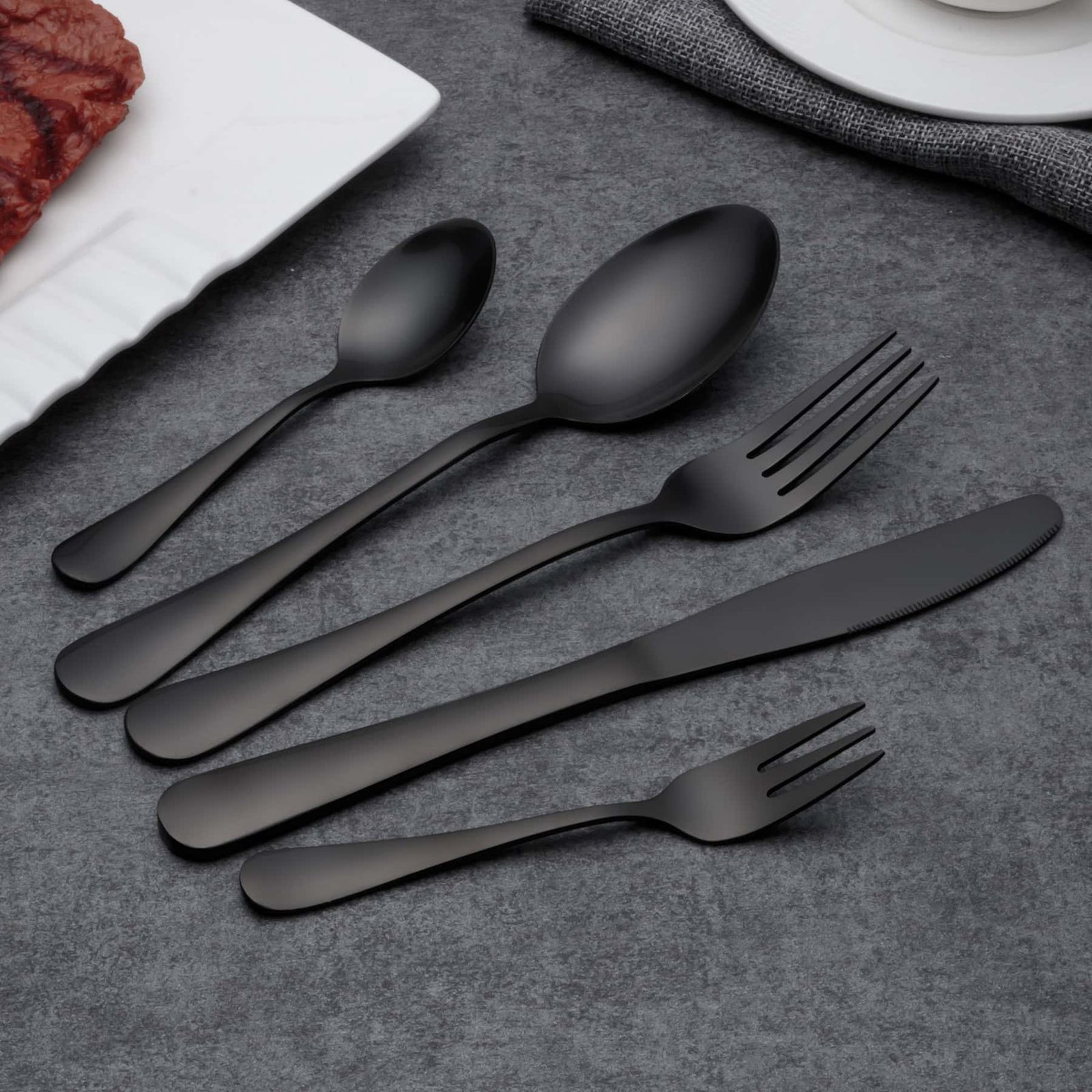 Are you looking for elegant cutlery set to complement a traditional yet modern style that is sure to spark an increase in your appetite and enhance all dining experiences? Let’s try our Black silverware set, it will impress you. Unique black silverware set, fancy eating utensil set feature with satin finish surface, standing out from that common flatware, add a touch of elegant and luxurious dining sense on your table setting. Nice black flatware set great for family daily use, entertaining guests, restaurant, party, wedding, and any formal or casual occasions. Superior quality, forks, and spoons silverware set is made of premium stainless steel, resist rust and corrosion, vacuum electroplate technology ensures long-lasting of black finish, will not chip off or fade its color, durable to serve you well for years to come. Don’t miss this Black silverware set! Get now!
