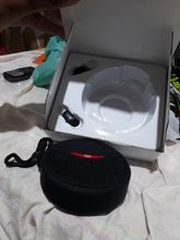 Headphones sound is good, though the bass is buried, and sometimes between the songs it can be heard pounding, during the flash of the bulbs;;; The speaker-for this size is very loud; the sound is good, even probably excellent for such price. The headset as a whole is a little battery and sits down very quickly, in speaker mode; ergonomic, and the non-slip circle helps to keep on the dashboard in the car. It's worth it.