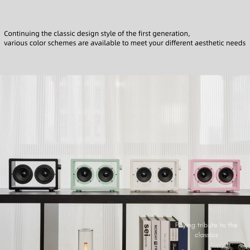 • Box material: This speaker has a sleek and elegant box made of aluminum alloy, which gives it a premium and sturdy look. The aluminum alloy also helps to dissipate heat and protect the speaker from overheating. The speaker has a smooth and matte finish, with a simple and minimalist design that can fit any decor and style. The speaker also has a rubber base that prevents it from sliding or scratching the surface.
