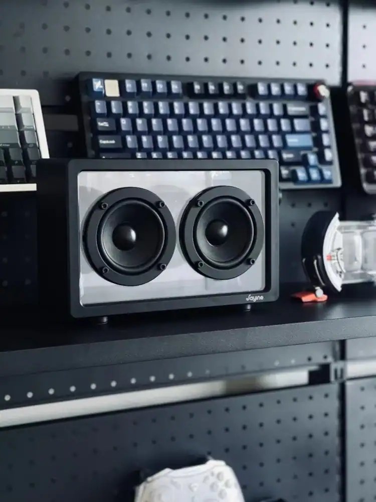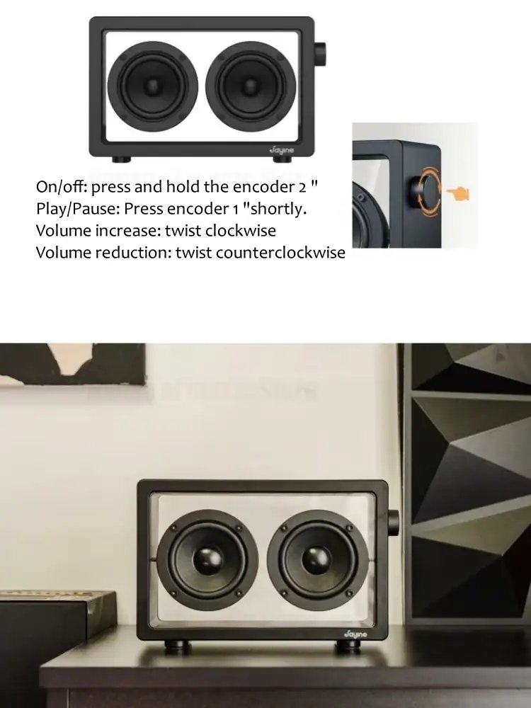 • Box material: This speaker has a sleek and elegant box made of aluminum alloy, which gives it a premium and sturdy look. The aluminum alloy also helps to dissipate heat and protect the speaker from overheating. The speaker has a smooth and matte finish, with a simple and minimalist design that can fit any decor and style. The speaker also has a rubber base that prevents it from sliding or scratching the surface.