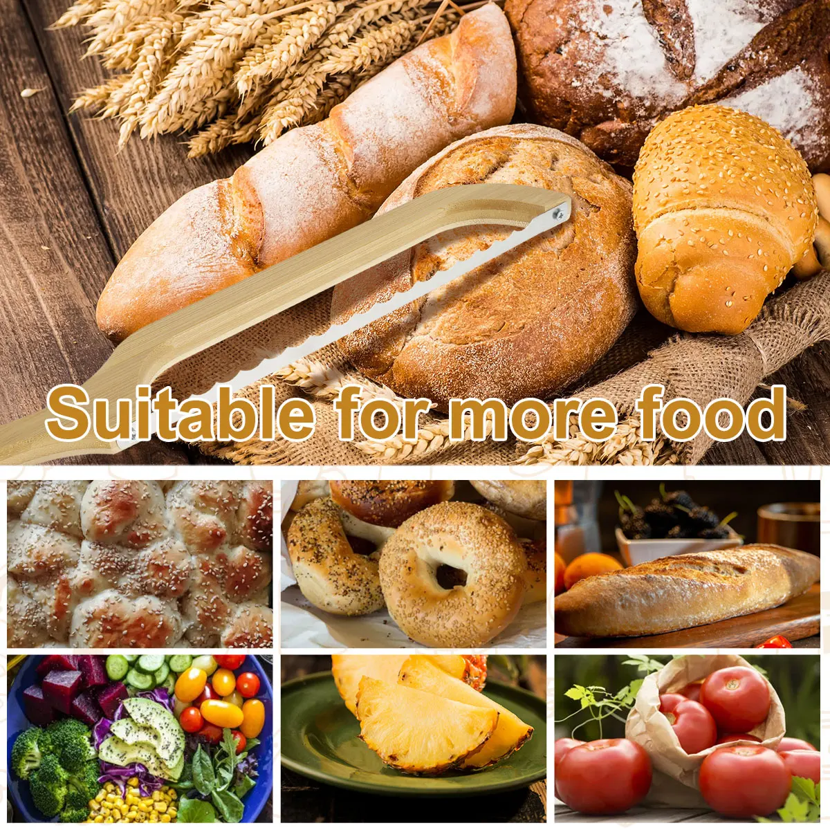 3.[Multi-Purpose] This bread cutter is suitable for cutting bread, cucumber, bagel, baguette, fruit, etc., to meet your different cutting needs.