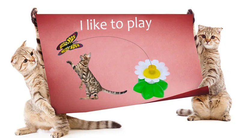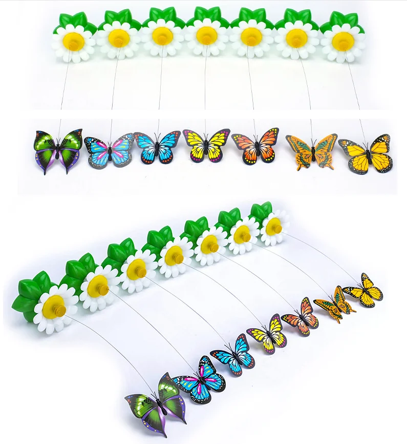 The Funny Butterfly Cat Toy flutters and flies around unpredictably, driving your cat wild and encouraging active play. With just a touch of the button and a gentle push, the battery-operated butterfly starts to rotate. It is attached to the end of a thin wire that vibrates slightly, causing the butterfly to move in a life-like way.
