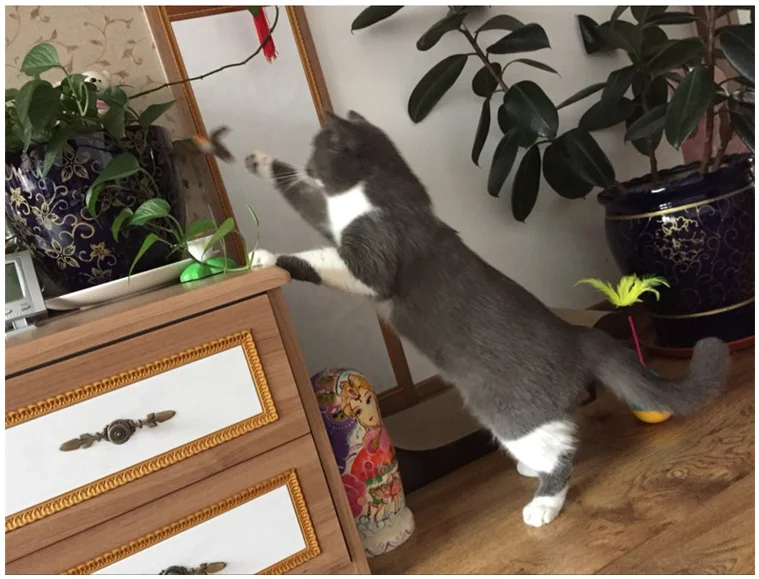 The natural movement of the butterfly will stimulate your cat’s hunting instincts and encourage it to give chase. The toy’s green base is broad and heavy enough to stop it from sliding around, even during lively attacks on the flying prey.