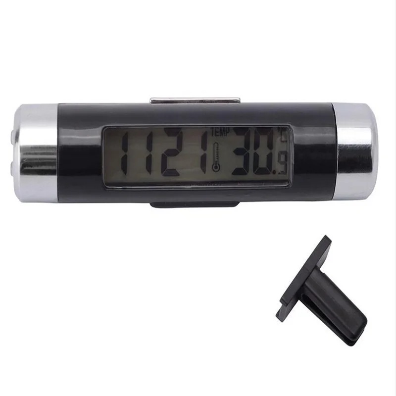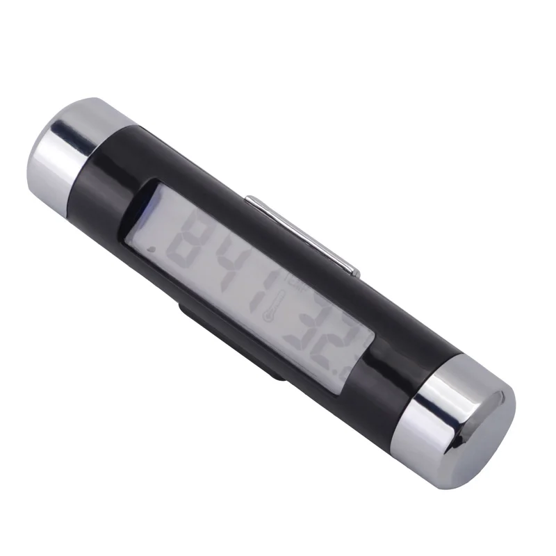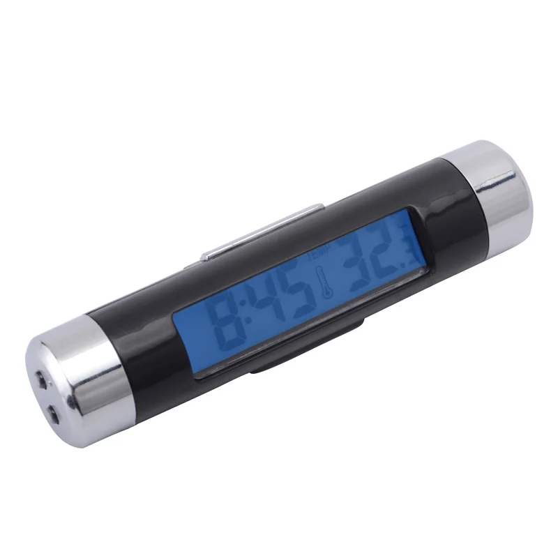 2. Compact, stylish, and novel car clock thermometer.Clock, temperature display function Blue backlight, equipped with clips and double-sided stickers, an air outlet, centre console, etc., easy to install.