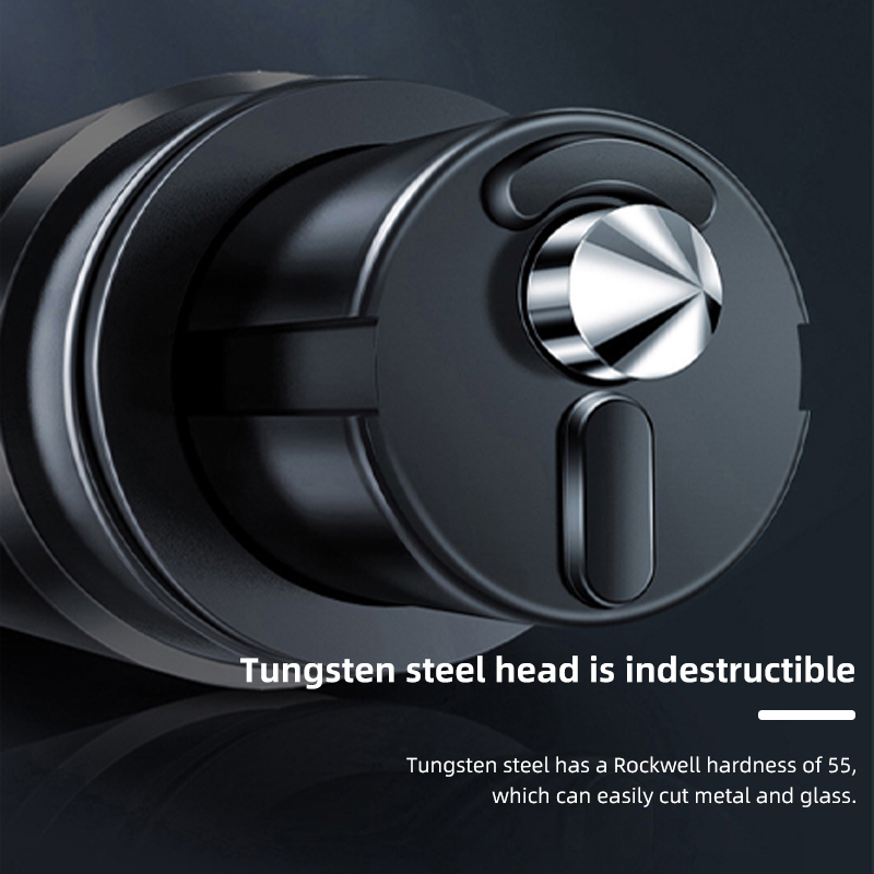 Using high-strength tungsten steel head, Rockwell hardness of 55, can easily cut metal and glass. The window can be broken by one click, and the instantaneous impact force is equivalent to the impact of a 6kg weight. Windows can also be broken underwater.