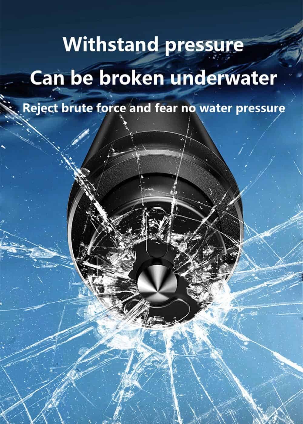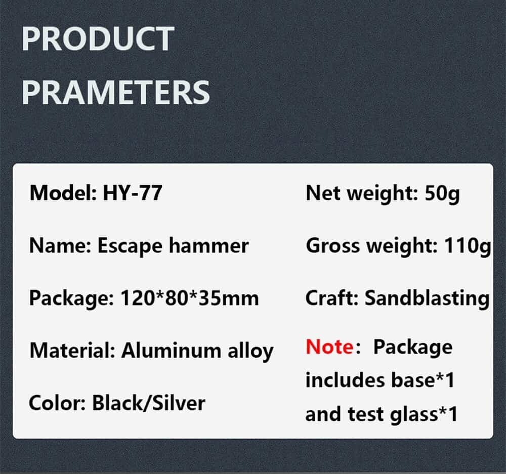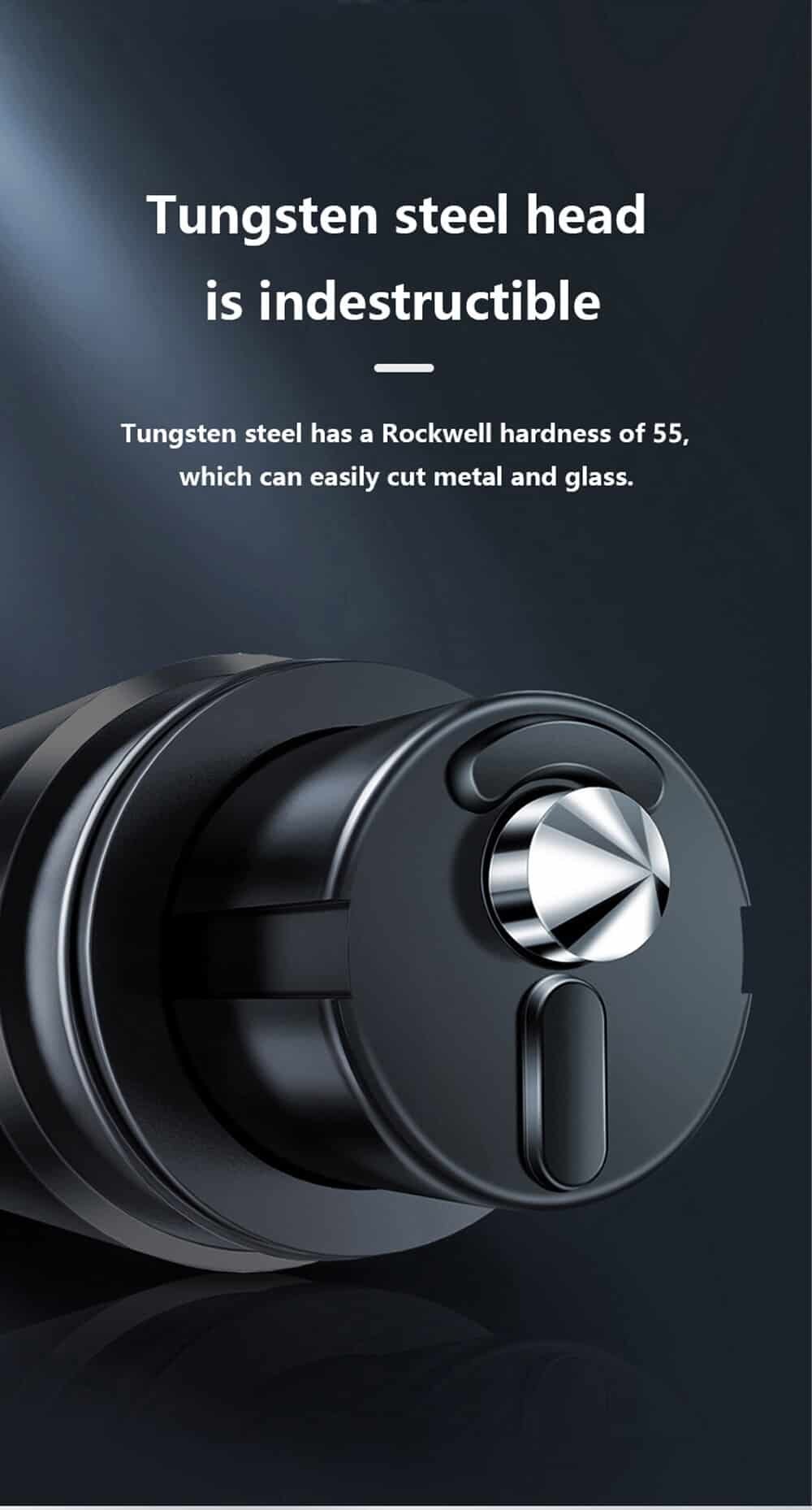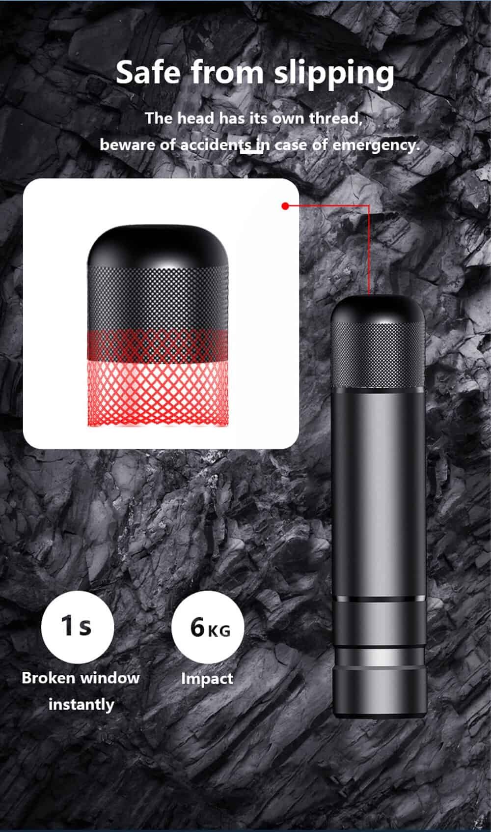 Using high-strength tungsten steel head, Rockwell hardness of 55, can easily cut metal and glass. The window can be broken by one click, and the instantaneous impact force is equivalent to the impact of a 6kg weight. Windows can also be broken underwater.