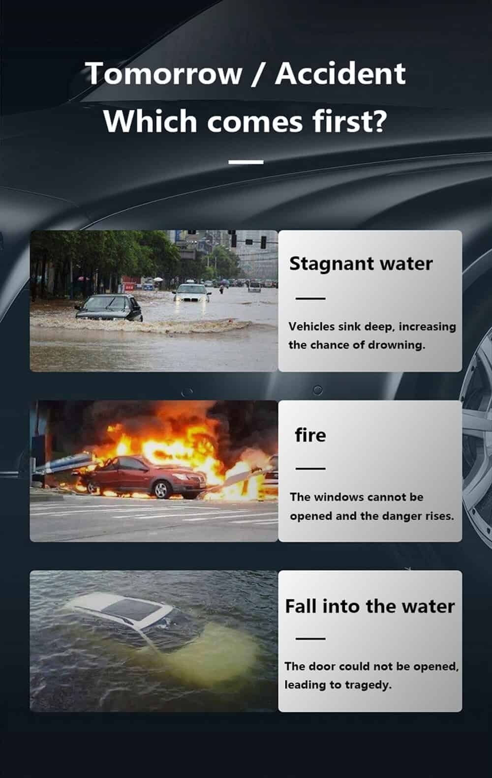 Imagine you are driving on a highway and suddenly you lose control of your car. You crash into a guardrail and your car flips over. You are trapped inside, unable to open the door or the window. You are scared, panicked, and helpless. What do you do? If you have a Car Emergency Hammer Tool, you can break the window with a powerful strike and cut through the seat belt with a sharp blade. You can also use the warning light to alert other drivers and the alarm to attract attention. You can save yourself and your passengers from a life-threatening situation. The Car Emergency Hammer Tool is an essential item for every car owner. It can make the difference between life and death in an emergency. Don’t risk your safety and the safety of your loved ones. Order your Car Emergency Hammer Tool today and be ready with the Car Emergency Hammer Tool!