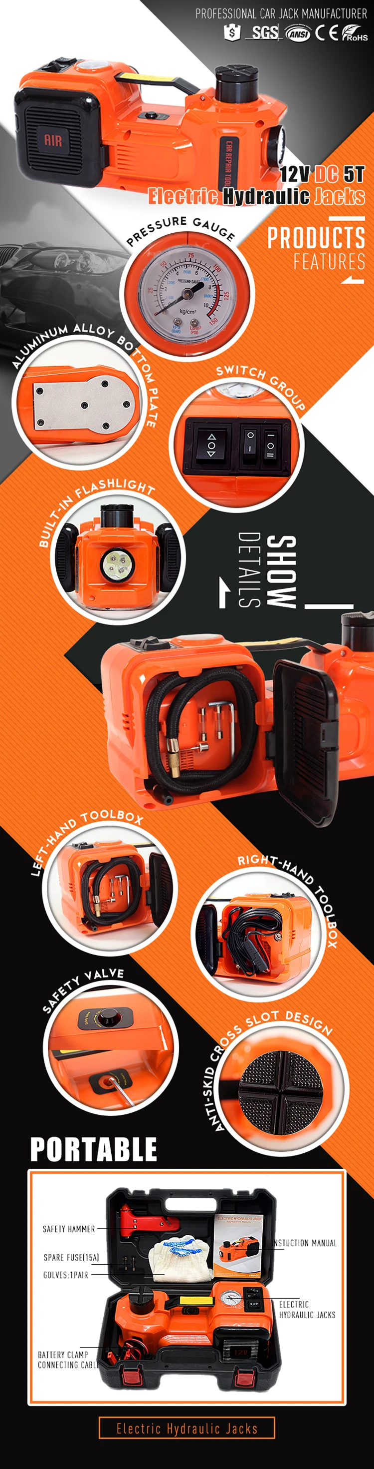 Everything works-a compressor, a jack, flashlights.