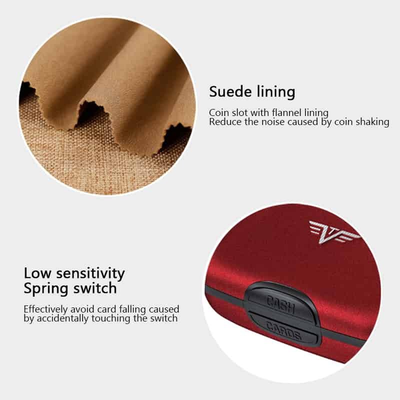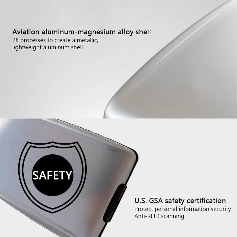 1. Security: Our cash and card wallet is the first aluminum wallet with integrated card and coin compartments, with a patented storage system for security and organization.