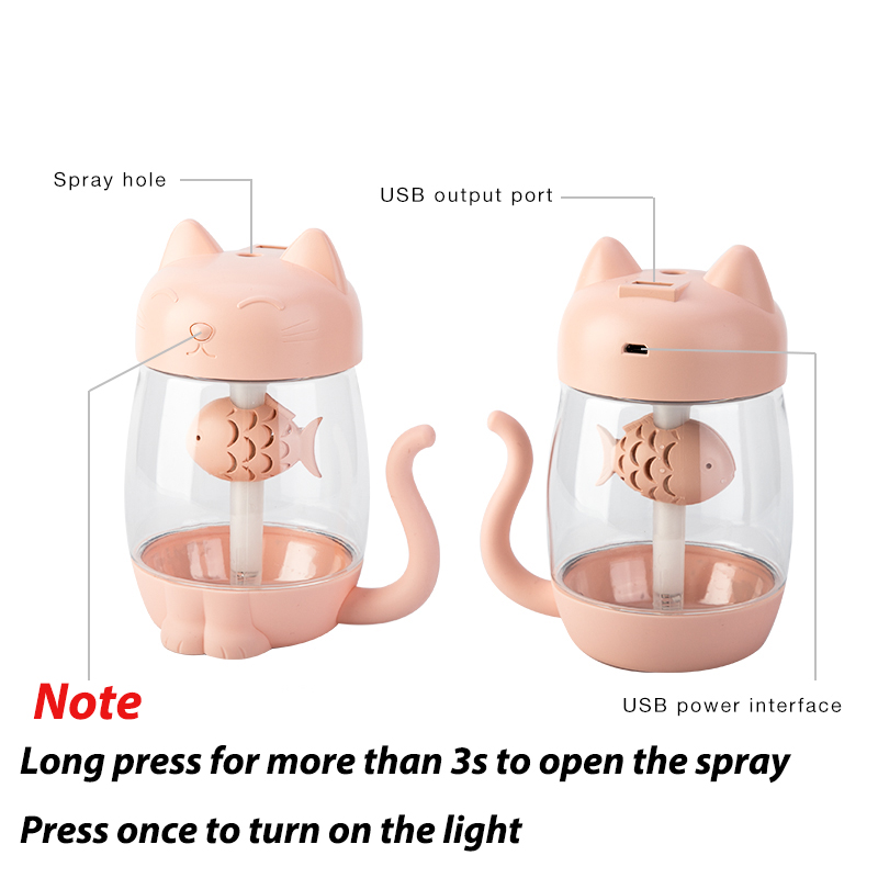 This adorable Mini Cat Air Humidifier will effectively help reduce the computer screen radiation, relieve dry air discomforts, refresh air, moisturize skin, etc. Safe and easy to use, perfect for use in air-conditioned rooms, offices, bedrooms or cars, etc. 350ml capacity and standard USD charge point.