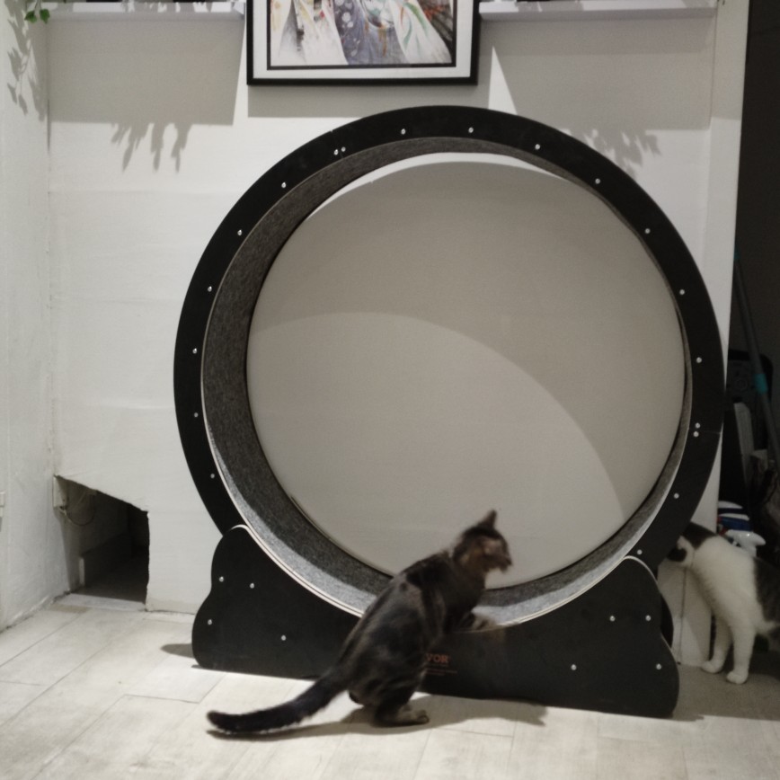 This isn’t just a cat exercise wheel; it’s also a cozy cat bed. You can place soft cushions, blankets, or mattresses on the wheel, making it a comfortable cat home.