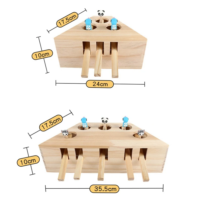 Our interactive cat hunting toys are made from high-quality wood, so it is very durable and useful. All small cartoon toys are non-toxic and safe for your cats and are also friendly to the environment.