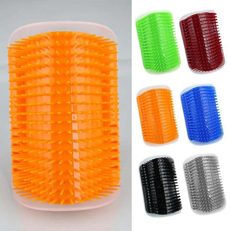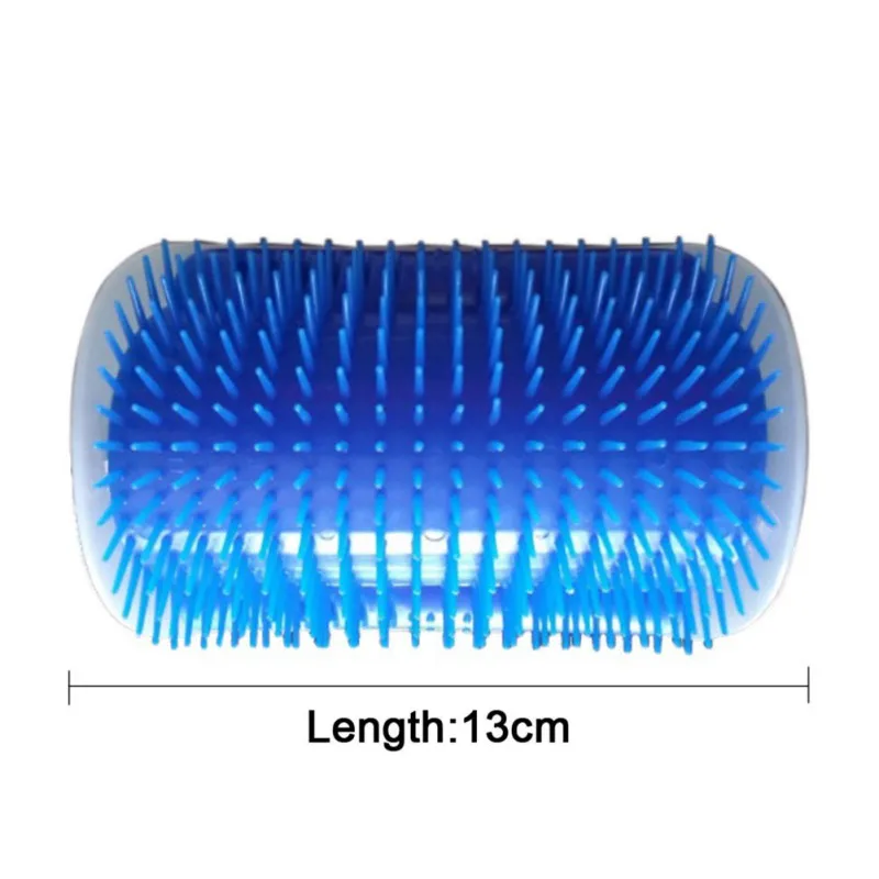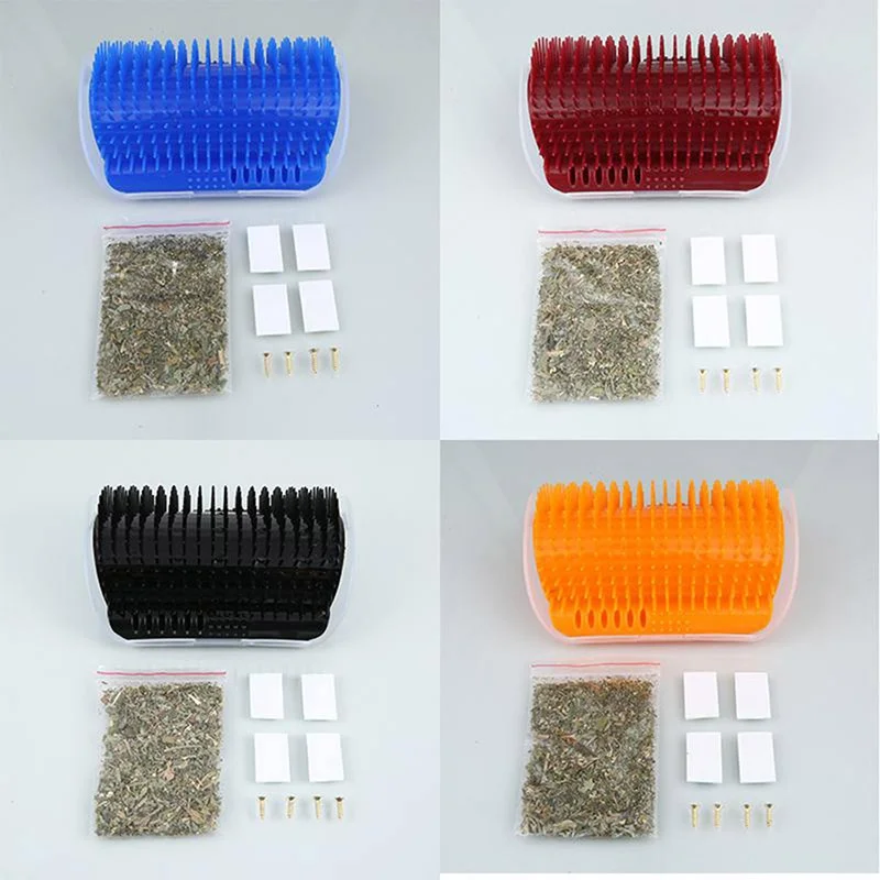 Durable brush with a compartment for catnip, it can easily be mounted on either a flat wall or corner surfaces.