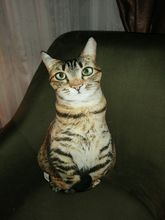 Very satisfied with the purchase, ordered with the guy, because we still can not afford a live kitten. But it's just a miracle, sometimes you do not even understand whether it's a toy or a live cat. It looks a little ridiculous, but it's as indicated in the photos to the product, with a count on it and taken. The fabric is pleasant, not like cheap pillows-anti stress, but like a real toy. After getting washed, nothing settled, the filler did not become less, it is washed quickly and simply in hand washing.