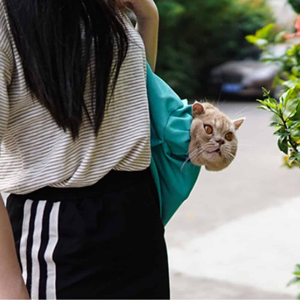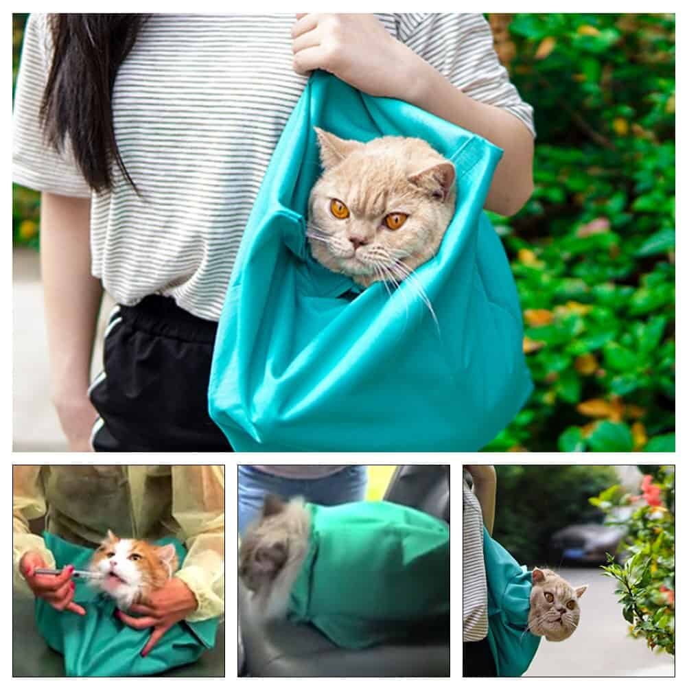 Are you searching for a comfy cat travel pouch that will keep your cat calm and safe while travelling or carrying around? Comfy Cat Travel Pouch is the innovative comfy pet carrier and grooming sack in one. Now you can hold your kitty steady, calm, and comfortable when taking to the vet or travel. There is even a shoulder strap for easy carrying, so you won’t feel the weight of it at all. The perfect grooming sack to keep kitty calm and still while clipping nails. Just slide the collar over kitty’s head, adjust to the size and close it with zipper. Ideal for any size cat. Designed to keep kitty close and secure.