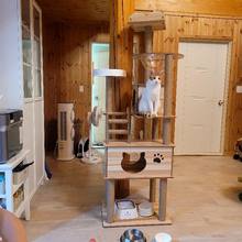 Our cat tree is ideal for multi-cat households or for any cat that loves climbing and exploring. It’s perfect for indoor use, providing your cats with a safe and entertaining area to exercise their natural instincts. The tower’s robust design also makes it suitable for cats of all sizes and ages.