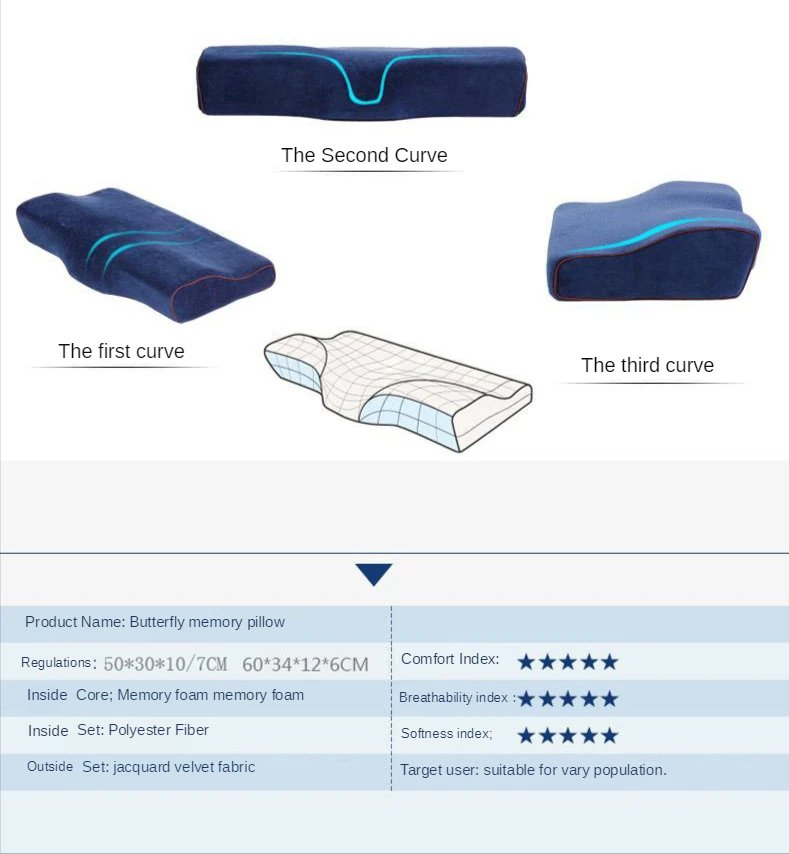 The butterfly memory foam contours to the body shape for a better spinal alignment and optimal support to the neck & head. The slow rebound prevents deformation of pillow, allowing you to enjoy your stress releasing sleep for a longer time through years.