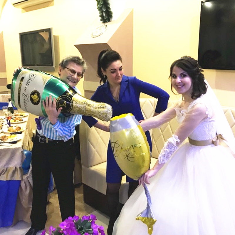 Balloons are beautiful :) large, inflated with an ordinary plastic tube. To inflate champagne you need to blow and several times squeeze in the place where the leg and the upper part of the glass intersects. Thus, the air will go further, or first inflated only the leg. I want to order more :)